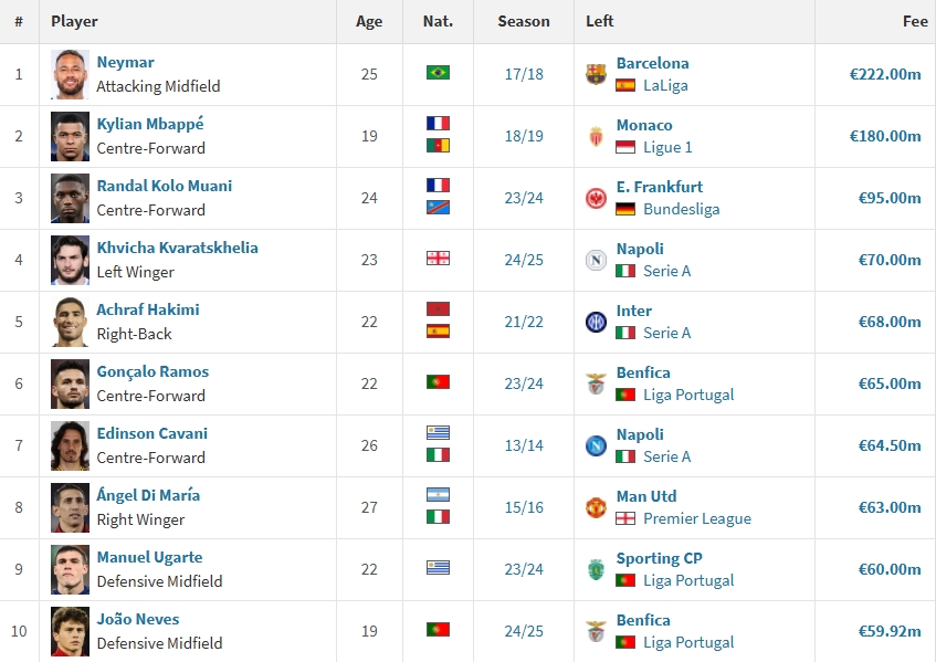 巴黎队史前十引援